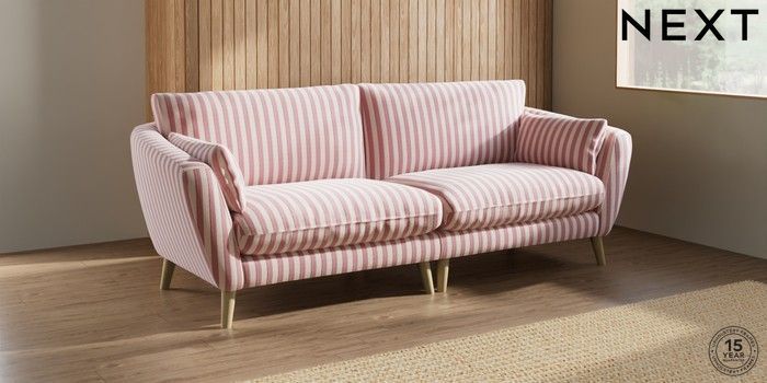 7.3.1 Buy Orlo Relaxed Sit 4 Seater Sofa Bold Chenille Stripe Dark Pink Retro Tapered - Light from the Next UK online shop Click here to use our accessible website