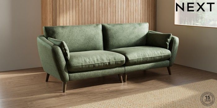6.12.1 Buy Orlo Relaxed Sit 4 Seater Sofa Boucle Chenille Dark Moss Green Retro Tapered - Mid from the Next UK online shop Click here to use our accessible website