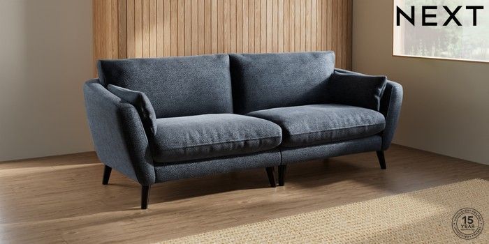 6.12.1 Buy Orlo Relaxed Sit 4 Seater Sofa Boucle Chenille Dark Slate Blue Retro Tapered - Dark from the Next UK online shop Click here to use our accessible website