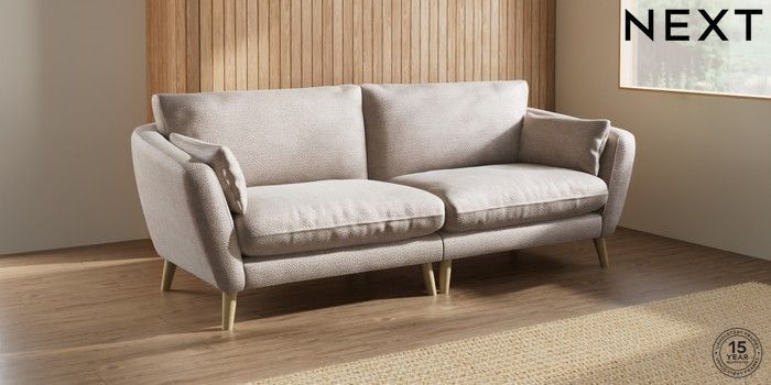 6.12.1 Buy Orlo Relaxed Sit 4 Seater Sofa Boucle Chenille Light Natural Retro Tapered - Light from the Next UK online shop Click here to use our accessible website