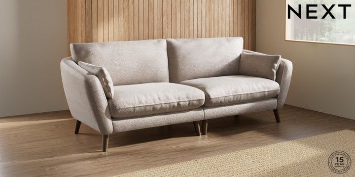 6.12.1 Buy Orlo Relaxed Sit 4 Seater Sofa Boucle Chenille Light Natural Retro Tapered - Mid from the Next UK online shop Click here to use our accessible website