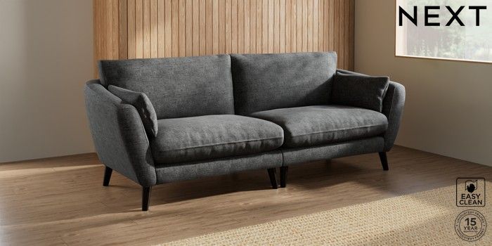 6.12.1 Buy Orlo Relaxed Sit 4 Seater Sofa Boucle Weave Easy Clean Charcoal Grey Retro Tapered - Dark from the Next UK online shop Click here to use our accessible website