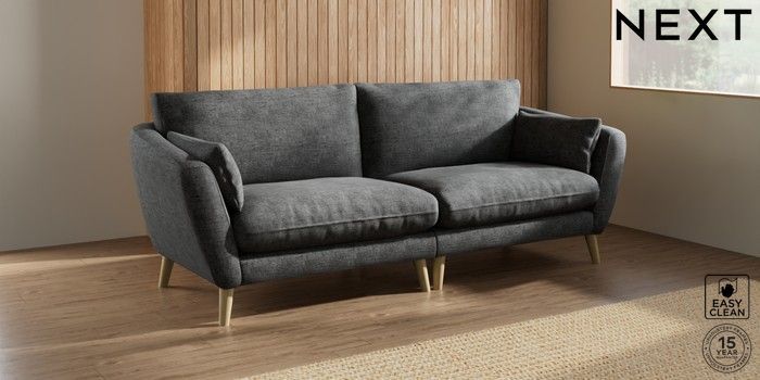6.12.1 Buy Orlo Relaxed Sit 4 Seater Sofa Boucle Weave Easy Clean Charcoal Grey Retro Tapered - Light from the Next UK online shop Click here to use our accessible website