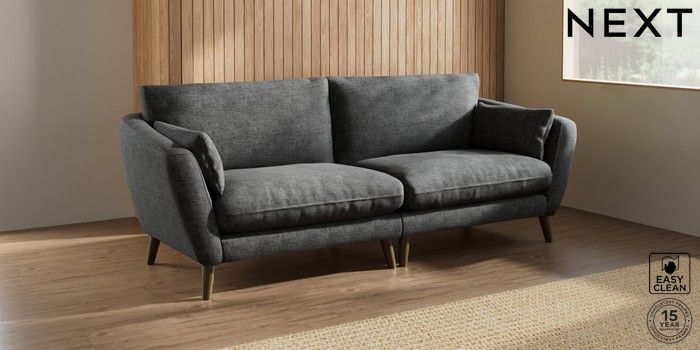 6.12.1 Buy Orlo Relaxed Sit 4 Seater Sofa Boucle Weave Easy Clean Charcoal Grey Retro Tapered - Mid from the Next UK online shop Click here to use our accessible website