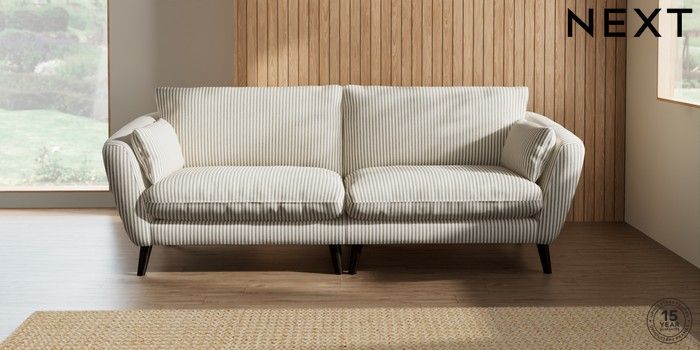 7.3.1 Buy Orlo Relaxed Sit 4 Seater Sofa Chenille Stripe Moss Green Retro Tapered - Dark from the Next UK online shop Click here to use our accessible website