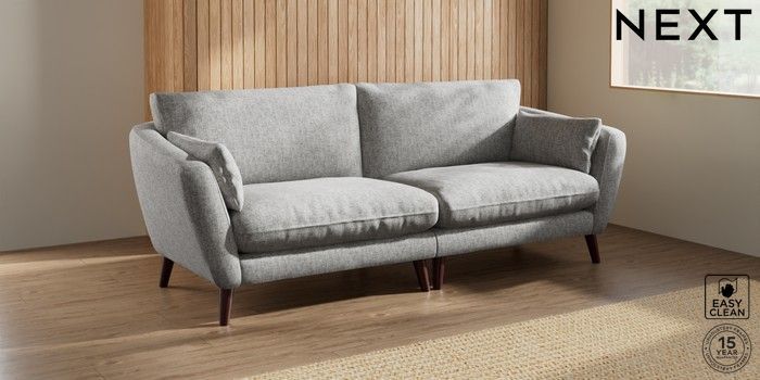 6.12.1 Buy Orlo Relaxed Sit 4 Seater Sofa Chunky Boucle Easy Clean Light Grey Retro Tapered - Dark Brown from the Next UK online shop Click here to use our accessible website