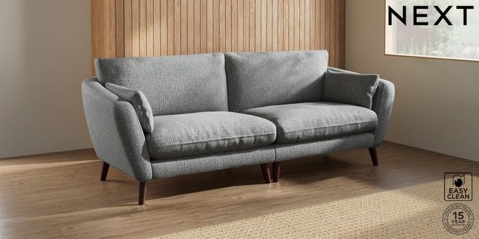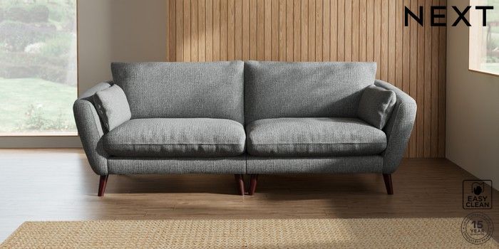 6.12.1 Buy Orlo Relaxed Sit 4 Seater Sofa Chunky Boucle Easy Clean Mid Grey Retro Tapered - Dark Brown from the Next UK online shop Click here to use our accessible website