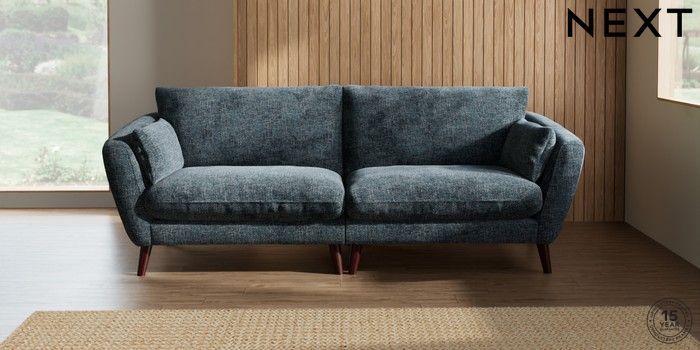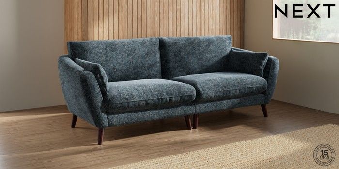 6.12.1 Buy Orlo Relaxed Sit 4 Seater Sofa Chunky Chenille Dark Navy Blue Retro Tapered - Dark Brown from the Next UK online shop Click here to use our accessible website