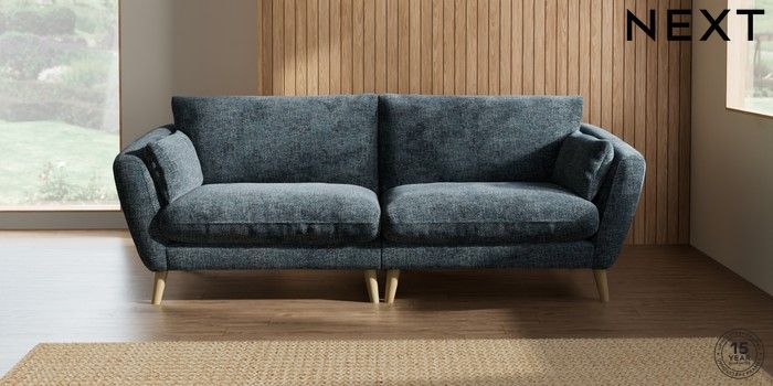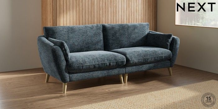 6.12.1 Buy Orlo Relaxed Sit 4 Seater Sofa Chunky Chenille Dark Navy Blue Retro Tapered - Light from the Next UK online shop Click here to use our accessible website