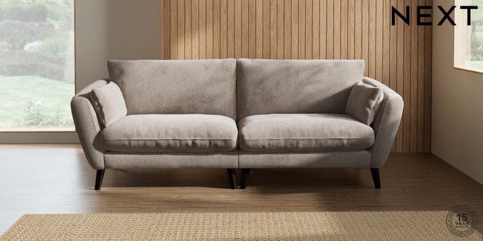 6.12.1 Buy Orlo Relaxed Sit 4 Seater Sofa Chunky Chenille Light Dove Retro Tapered - Dark from the Next UK online shop Click here to use our accessible website