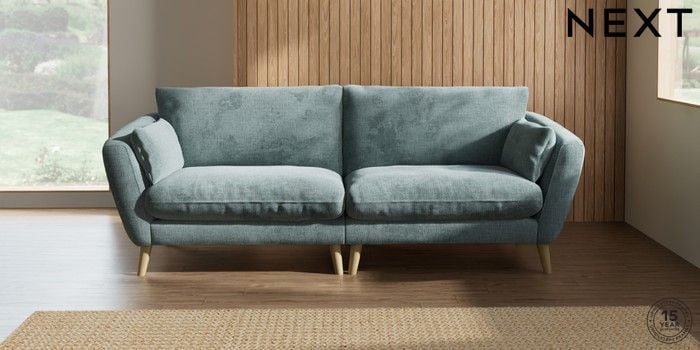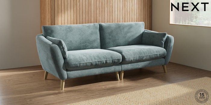 6.12.1 Buy Orlo Relaxed Sit 4 Seater Sofa Chunky Chenille Light Teal Green Retro Tapered - Light from the Next UK online shop Click here to use our accessible website
