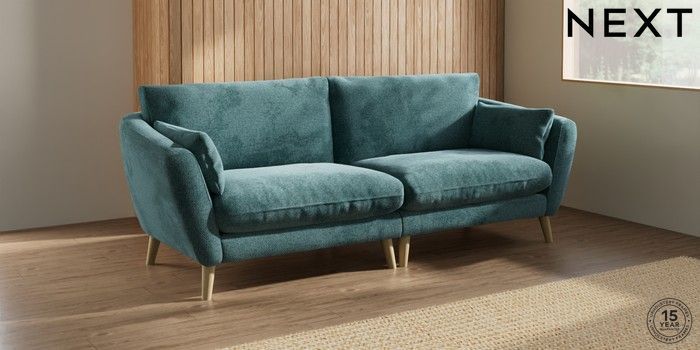 6.12.1 Buy Orlo Relaxed Sit 4 Seater Sofa Chunky Chenille Mid Teal Green Retro Tapered - Light from the Next UK online shop Click here to use our accessible website