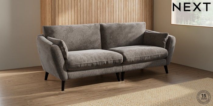 6.12.1 Buy Orlo Relaxed Sit 4 Seater Sofa Chunky Chenille Mink Brown Retro Tapered - Dark from the Next UK online shop Click here to use our accessible website