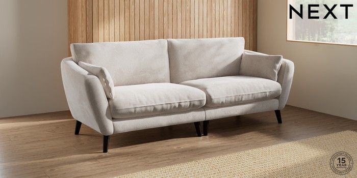 6.12.1 Buy Orlo Relaxed Sit 4 Seater Sofa Chunky Chenille Oyster Retro Tapered - Dark from the Next UK online shop Click here to use our accessible website