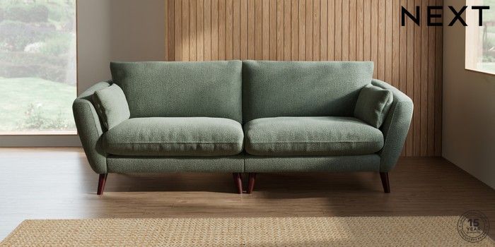 6.12.1 Buy Orlo Relaxed Sit 4 Seater Sofa Chunky Texture Mid Forest Green Retro Tapered - Dark Brown from the Next UK online shop Click here to use our accessible website
