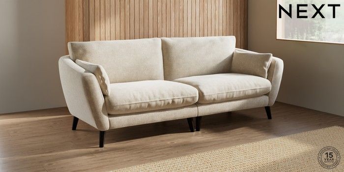 6.12.1 Buy Orlo Relaxed Sit 4 Seater Sofa Chunky Weave Cream Retro Tapered - Dark from the Next UK online shop Click here to use our accessible website