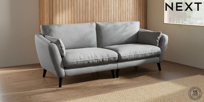6.12.1 Buy Orlo Relaxed Sit 4 Seater Sofa Chunky Weave Mid Grey Retro Tapered - Dark from the Next UK online shop Click here to use our accessible website
