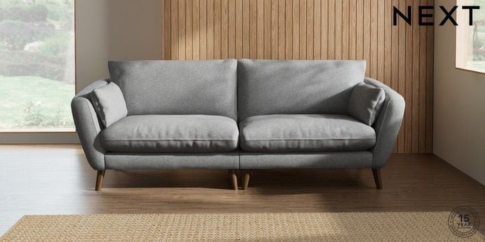 6.12.1 Buy Orlo Relaxed Sit 4 Seater Sofa Chunky Weave Mid Grey Retro Tapered - Mid from the Next UK online shop Click here to use our accessible website