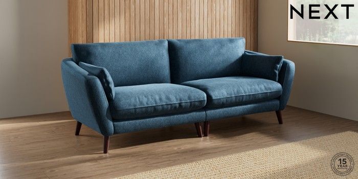 7.0.3 Buy Orlo Relaxed Sit 4 Seater Sofa Cotswold Chenille Dark Blue Retro Tapered - Dark Brown from the Next UK online shop Click here to use our accessible website