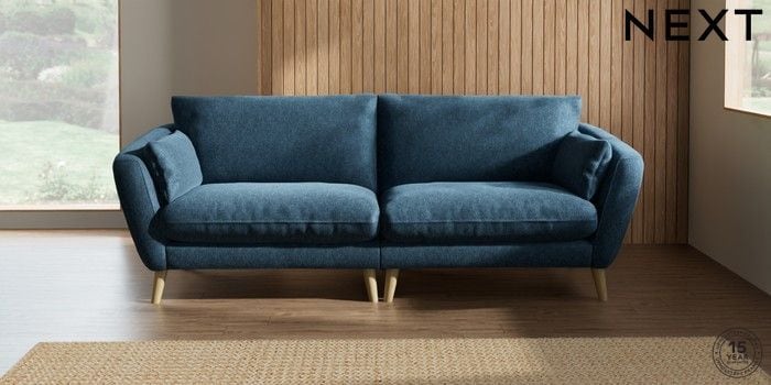 6.12.1 Buy Orlo Relaxed Sit 4 Seater Sofa Cotswold Chenille Dark Blue Retro Tapered - Light from the Next UK online shop Click here to use our accessible website
