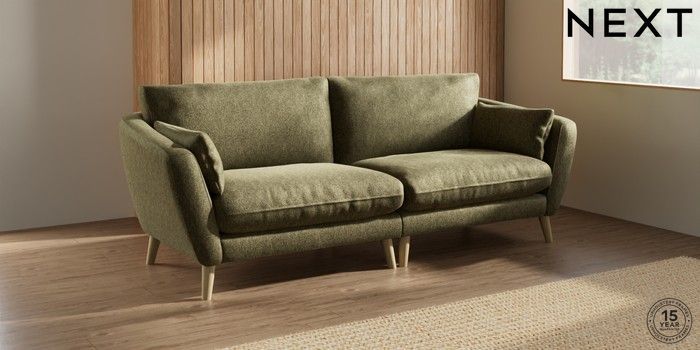 6.12.1 Buy Orlo Relaxed Sit 4 Seater Sofa Cotswold Chenille Dark Green Retro Tapered - Light from the Next UK online shop Click here to use our accessible website