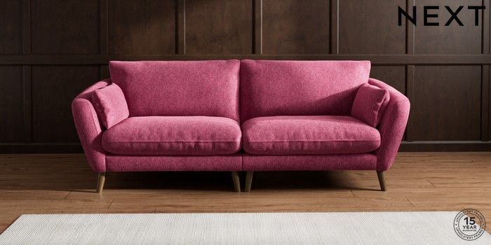 6.12.1 Buy Orlo Relaxed Sit 4 Seater Sofa Cotswold Chenille Dark Raspberry Pink Retro Tapered - Mid from the Next UK online shop Click here to use our accessible website