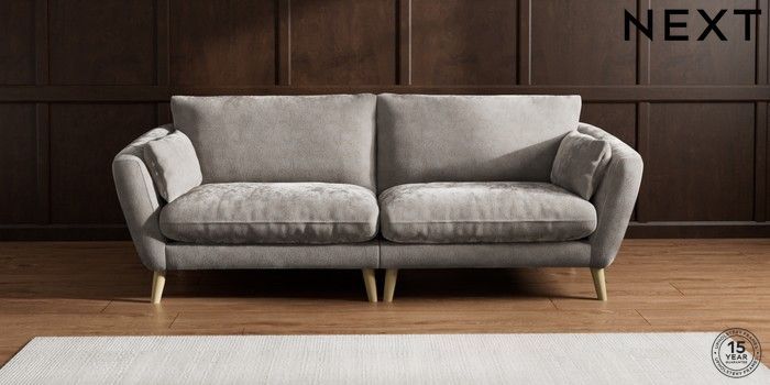 6.12.1 Buy Orlo Relaxed Sit 4 Seater Sofa Distressed Velour French Grey Retro Tapered - Light from the Next UK online shop Click here to use our accessible website