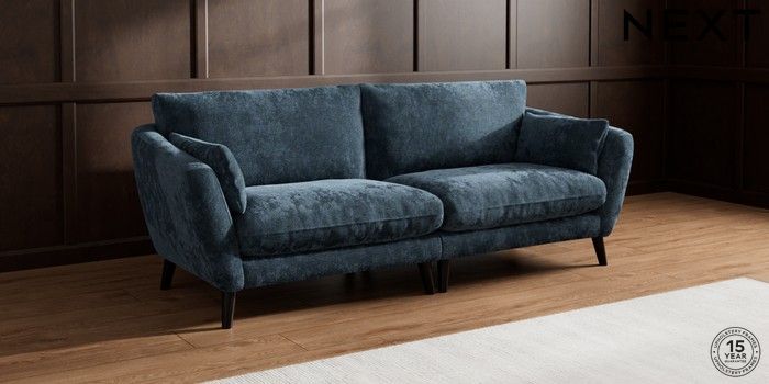 6.12.1 Buy Orlo Relaxed Sit 4 Seater Sofa Distressed Velour Midnight Blue Retro Tapered - Dark from the Next UK online shop Click here to use our accessible website