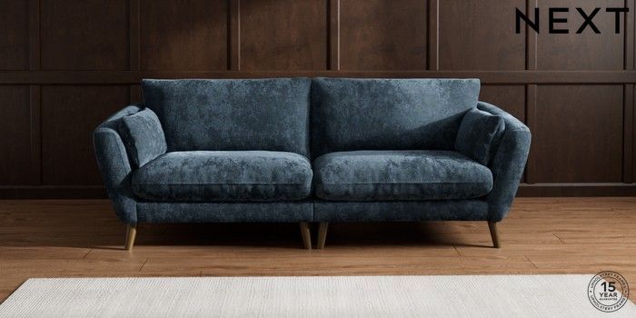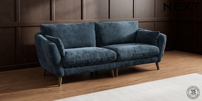 6.12.1 Buy Orlo Relaxed Sit 4 Seater Sofa Distressed Velour Midnight Blue Retro Tapered - Mid from the Next UK online shop Click here to use our accessible website