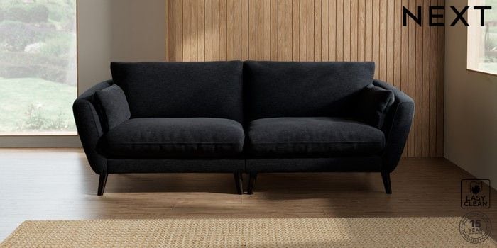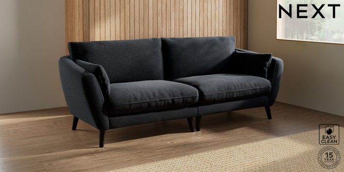 6.12.1 Buy Orlo Relaxed Sit 4 Seater Sofa Fine Chenille Easy Clean Black Retro Tapered - Dark from the Next UK online shop Click here to use our accessible website