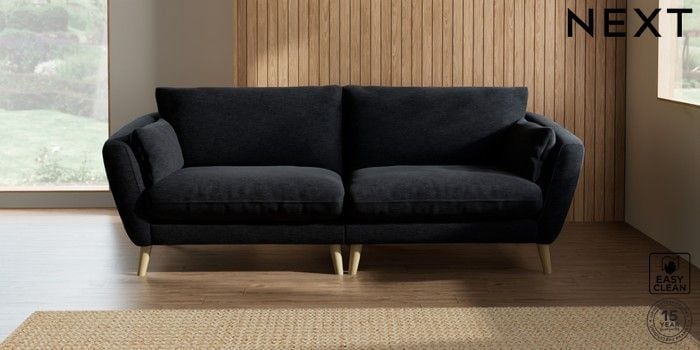 6.12.1 Buy Orlo Relaxed Sit 4 Seater Sofa Fine Chenille Easy Clean Black Retro Tapered - Light from the Next UK online shop Click here to use our accessible website