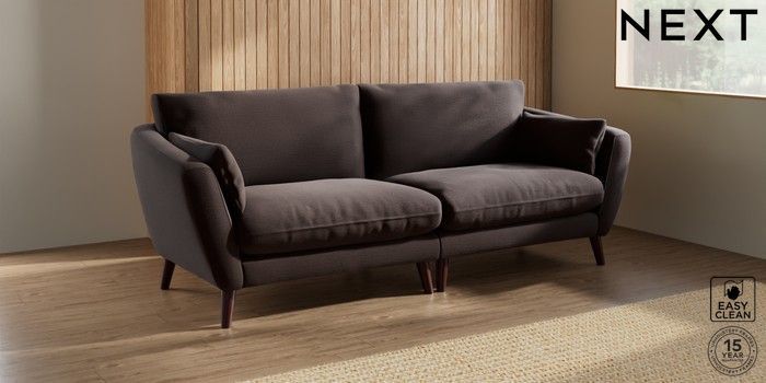 7.0.3 Buy Orlo Relaxed Sit 4 Seater Sofa Fine Chenille Easy Clean Chocolate Brown Retro Tapered - Dark Brown from the Next UK online shop Click here to use our accessible website