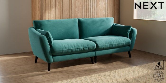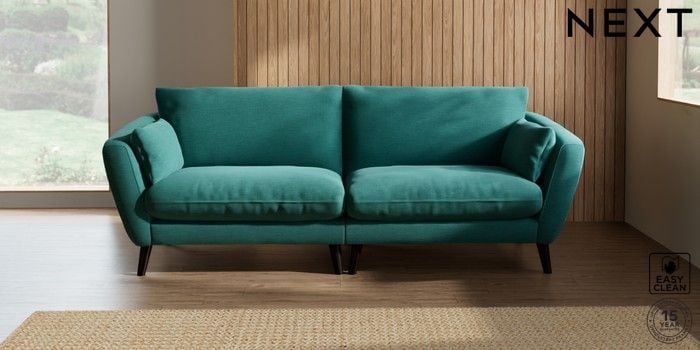 6.12.1 Buy Orlo Relaxed Sit 4 Seater Sofa Fine Chenille Easy Clean Dark Juniper Green Retro Tapered - Dark from the Next UK online shop Click here to use our accessible website