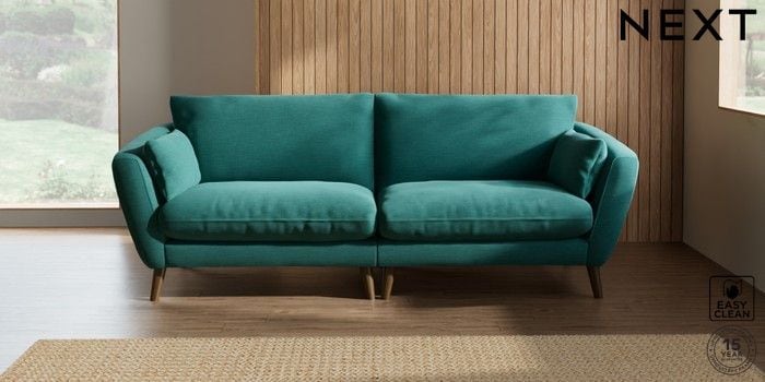 6.12.1 Buy Orlo Relaxed Sit 4 Seater Sofa Fine Chenille Easy Clean Dark Juniper Green Retro Tapered - Mid from the Next UK online shop Click here to use our accessible website