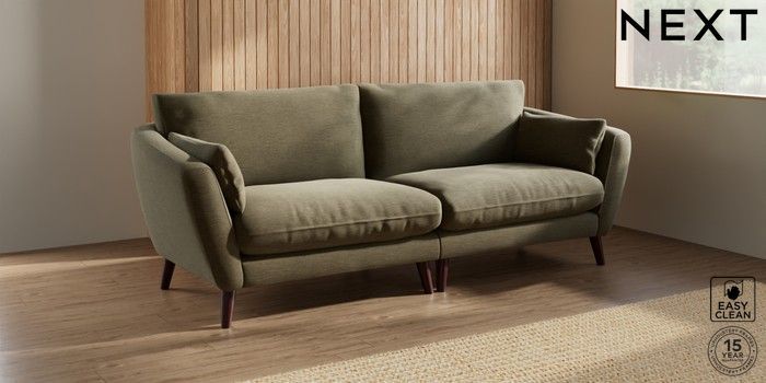 6.12.1 Buy Orlo Relaxed Sit 4 Seater Sofa Fine Chenille Easy Clean Dark Moss Green Retro Tapered - Dark Brown from the Next UK online shop Click here to use our accessible website