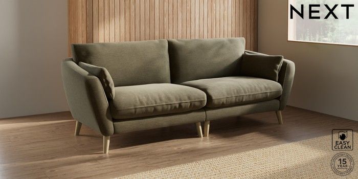 6.12.1 Buy Orlo Relaxed Sit 4 Seater Sofa Fine Chenille Easy Clean Dark Moss Green Retro Tapered - Light from the Next UK online shop Click here to use our accessible website