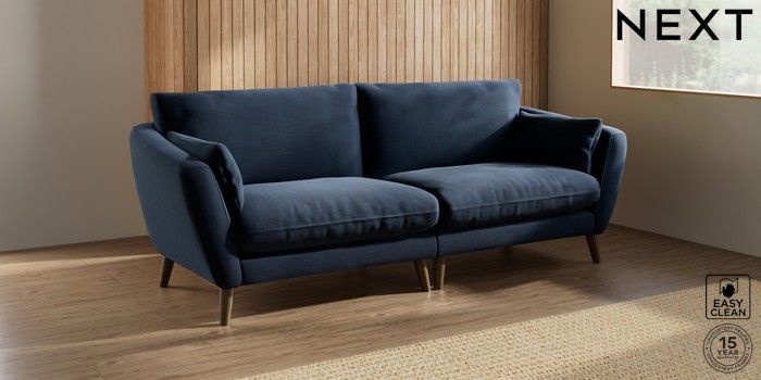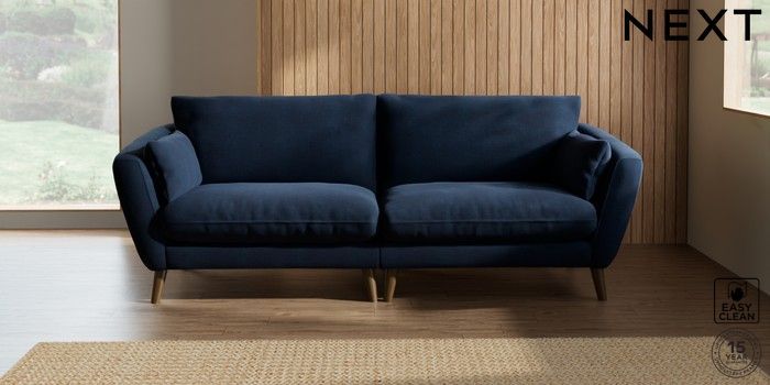 6.12.1 Buy Orlo Relaxed Sit 4 Seater Sofa Fine Chenille Easy Clean Dark Navy Blue Retro Tapered - Mid from the Next UK online shop Click here to use our accessible website