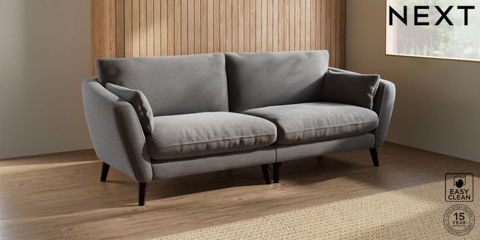 6.12.1 Buy Orlo Relaxed Sit 4 Seater Sofa Fine Chenille Easy Clean Dark Smoke Grey Retro Tapered - Dark from the Next UK online shop Click here to use our accessible website