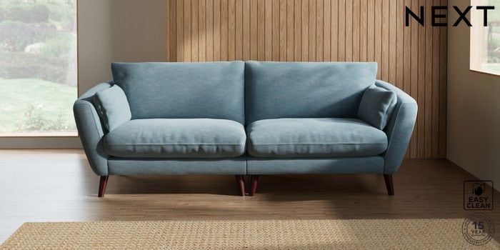 6.12.1 Buy Orlo Relaxed Sit 4 Seater Sofa Fine Chenille Easy Clean Mid Blue Retro Tapered - Dark Brown from the Next UK online shop Click here to use our accessible website