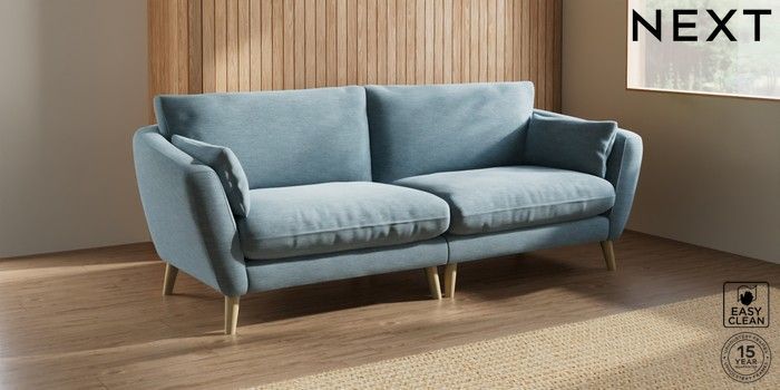 6.12.1 Buy Orlo Relaxed Sit 4 Seater Sofa Fine Chenille Easy Clean Mid Blue Retro Tapered - Light from the Next UK online shop Click here to use our accessible website