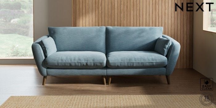 6.12.1 Buy Orlo Relaxed Sit 4 Seater Sofa Fine Chenille Easy Clean Mid Blue Retro Tapered - Mid from the Next UK online shop Click here to use our accessible website