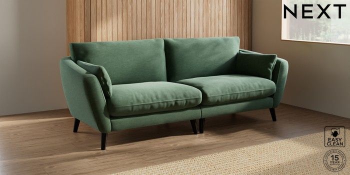 6.12.1 Buy Orlo Relaxed Sit 4 Seater Sofa Fine Chenille Easy Clean Mid Khaki Green Retro Tapered - Dark from the Next UK online shop Click here to use our accessible website