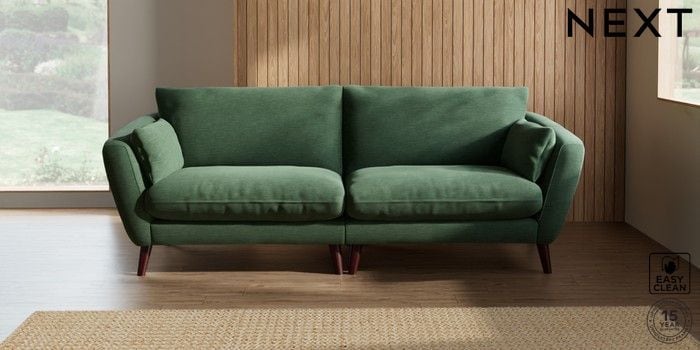6.12.1 Buy Orlo Relaxed Sit 4 Seater Sofa Fine Chenille Easy Clean Mid Khaki Green Retro Tapered - Dark Brown from the Next UK online shop Click here to use our accessible website
