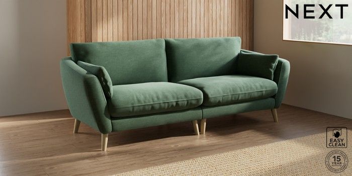 6.12.1 Buy Orlo Relaxed Sit 4 Seater Sofa Fine Chenille Easy Clean Mid Khaki Green Retro Tapered - Light from the Next UK online shop Click here to use our accessible website