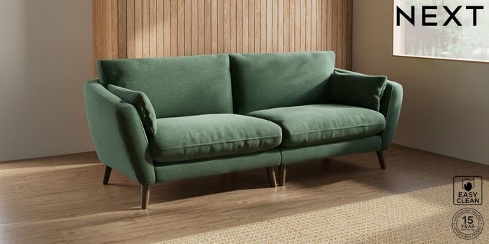 6.12.1 Buy Orlo Relaxed Sit 4 Seater Sofa Fine Chenille Easy Clean Mid Khaki Green Retro Tapered - Mid from the Next UK online shop Click here to use our accessible website