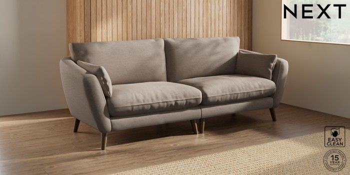 6.12.1 Buy Orlo Relaxed Sit 4 Seater Sofa Fine Chenille Easy Clean Mid Taupe Brown Retro Tapered - Mid from the Next UK online shop Click here to use our accessible website