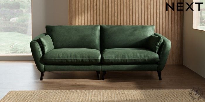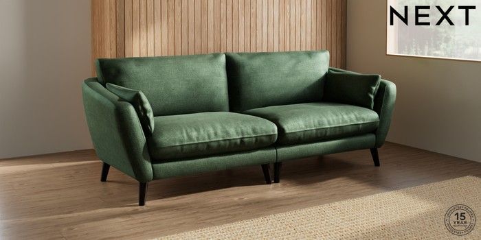 6.12.1 Buy Orlo Relaxed Sit 4 Seater Sofa Luxe Chenille Dark Green Retro Tapered - Dark from the Next UK online shop Click here to use our accessible website