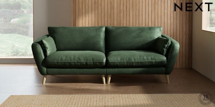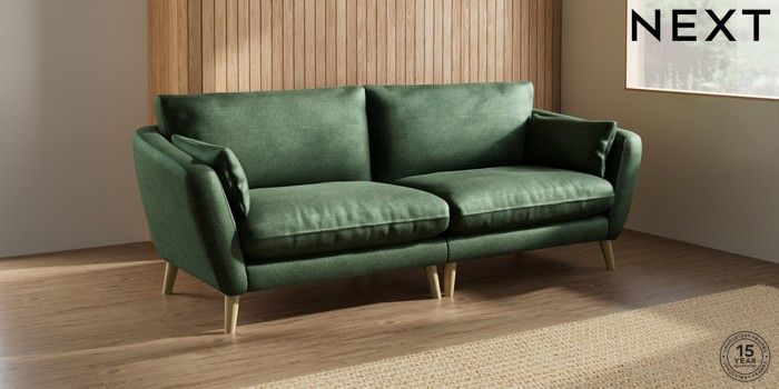 6.12.1 Buy Orlo Relaxed Sit 4 Seater Sofa Luxe Chenille Dark Green Retro Tapered - Light from the Next UK online shop Click here to use our accessible website