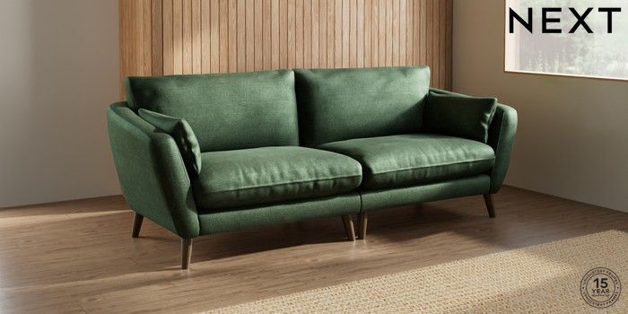 6.12.1 Buy Orlo Relaxed Sit 4 Seater Sofa Luxe Chenille Dark Green Retro Tapered - Mid from the Next UK online shop Click here to use our accessible website