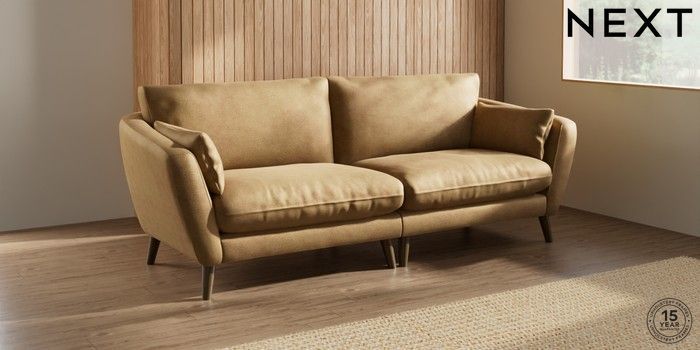 7.0.3 Buy Orlo Relaxed Sit 4 Seater Sofa Luxe Chenille Honey Yellow Retro Tapered - Mid from the Next UK online shop Click here to use our accessible website